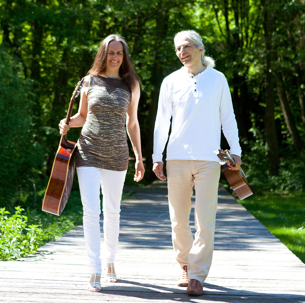 Die Beiden musizieren auf unterschiedlichen Gitarren: Michael Pfleger auf der Konzertgitarre mit klassischen Fingertechniken und Silvia Pfleger-Abächerli auf der Westerngitarre mit den dafür typischen Plektrum- und Picking-Techniken.